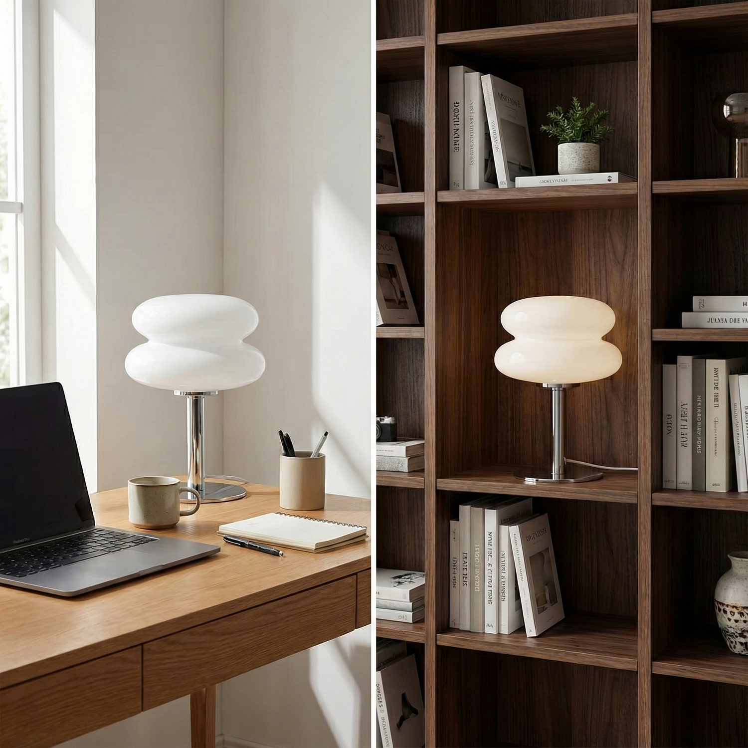 Whether illuminating your workspace with a calm, focused glow or nestled on a bookshelf to highlight your favourite decor, the Nordic Ripple adapts to your rhythm. Its compact footprint and sculptural form make it the perfect companion for both functional tasks and atmospheric evenings, proving that minimalist design never has to compromise on character.